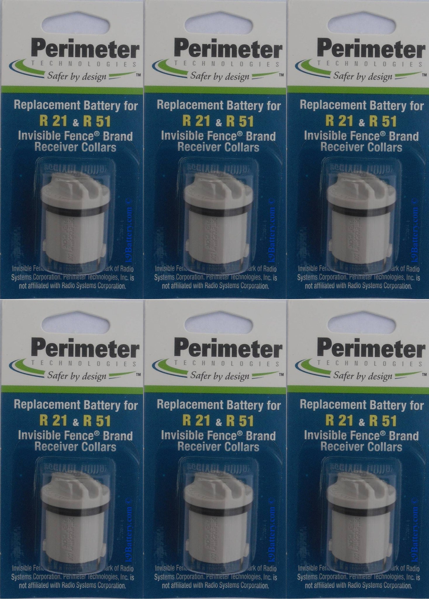 FREE SHIPPING! Six Replacement Battery Caps compatible with the Invisible Fence® Brand R21, R22, R51, & MicroLite™ receiver collars. Exact aftermarket reproduction of the Invisible Fence® Brand Power Cap®. Designed by Scott Touchton of Perimeter Technologies, Inc. (former chief engineer at Invisible Fence, Inc.) We ship all orders within 1 day!